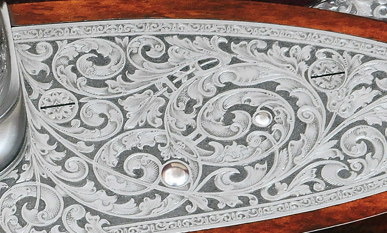In un'arma di classe ogni dettaglio deve essere eseguito a " regola d'arte ", ed al massimo livello di perfezione; non importa che si tratti di una parte essenziale della meccanica o di un semplice ornamento ed anzi minore è l'importanza funzionale che esso ha più la sua perfetta realizzazione denoterà l'insaziabile cura del suo artefice. Così quando qualcuno vi declama la qualità di un fucile, controllatelo da vicino iniziando, ad esempio, dagli zigrini. A prima vista essi possono apparire esteticamente irrilevanti e, di solito, sono relegati alla semplice funzione di migliorare la presa sull'impugnatura del legno. In realtà gli zigrini hanno per le parti in legno la stessa importanza che le incisioni hanno per le parti in acciaio. Di conseguenza, così come esistono incisioni più o meno elaborate, esistono zigrini più o meno difficili da realizzare. Fra di essi il più difficile e raffinato è il piattino all'inglese. Esso può essere eseguito solo a regola d'arte perchè il suo intreccio di linee finissime (normalmente con passo 0.8 mm) deve formare dei minuscoli rombi regolari e perfettamente incastonati gli uni negli altri. Ad ogni punta del profilo esterno corrisponderà un singolo rombo. Lo zigrino piattino non ammette errori di esecuzione perchè non può essere "corretto in progress". Di conseguenza, quando esso è perfetto, esalta la maestria del suo esecutore mentre quando è imperfetto ne mostra impietosamente ogni incertezza.