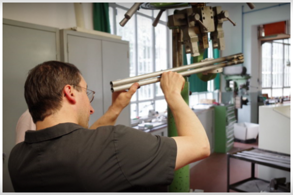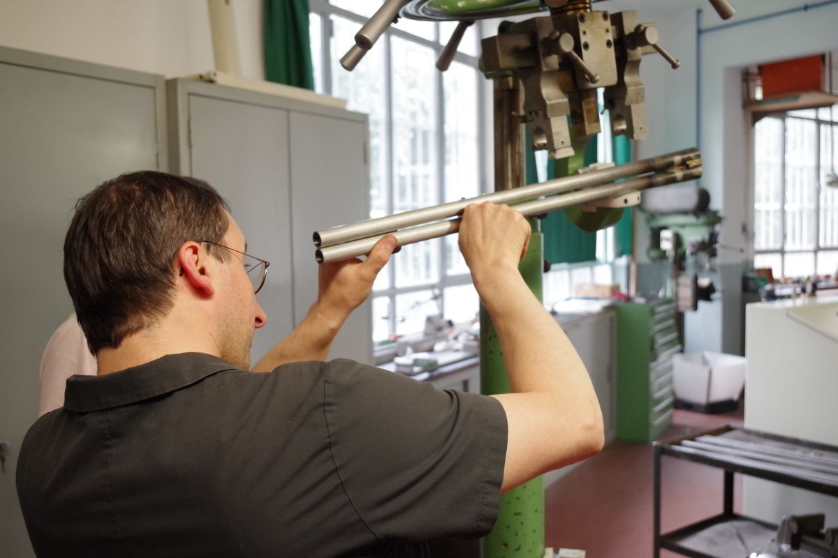 State pur certi che se qualcuno si millanta costruttore ma possiede solo un trapano ed un banco da lavoro, costui vi sta mentendo. Non c'è altro modo per costruire fucili che garantiscano massime qualità e sicurezza. Tuttavia il solo lavoro delle macchine non permette di realizzare oggetti raffinati. Infatti una qualsiasi cosa interamente realizzata industrialmente è priva di quell'anima che solo l'intervento della mano dell'uomo riesce a trasmettere. Così il segreto per costruire oggetti raffinati sta nel riuscire a trovare il giusto equilibrio tra macchina ed uomo. L'una sarà necessaria a garantire la precisione meccanica indispensabile per un perfetto funzionamento, l'altra renderà armoniosa l'unione di tutti i componenti di acciaio e legno. Ne consegue che ogni nostra arma necessità di un elevato numero di ore per assemblaggi e finiture. L'armaiolo non può solo saper usare una lima ma deve avere nozioni di meccanica, metallurgia, chimica e storia poiché un'arma di pregio racchiude in se tutte queste cose. L'oggetto finito rappresenta il punto di arrivo di un lungo percorso professionale e di vita, una continua ricerca del meglio. Qualsiasi cosa venga realizzata senza il massimo impegno si mischierà alle schiere degli oggetti mediocri. Un fucile di qualità non viene costruito per essere riposto in una rastrelliera, al contrario è il suo intenso utilizzo che ne dimostra il valore e la superiorità.Ogni singolo componente viene realizzato a regola d'arte, assemblato e rifinito tramite un accurato lavoro al banco. Non giudicate mai un'arma da come essa appare esteriormente, cercate la sua bellezza all'interno. Se essa è più bella dentro piuttosto che fuori significa che il suo artefice l'ha costruita per sua soddisfazione personale piuttosto che per un ritorno economico. I bei legni, gli intarsi in oro e le incisioni sovraccariche non sono parametri applicabili nel giudizio di un'arma di classe, così come affreschi e decorazioni non possono dare l'esatta misura della perfezione architettonica di una cattedrale. Al contrario, tutto ciò che è appariscente molte volte serve a distogliere l'attenzione da punti critici mal realizzati.