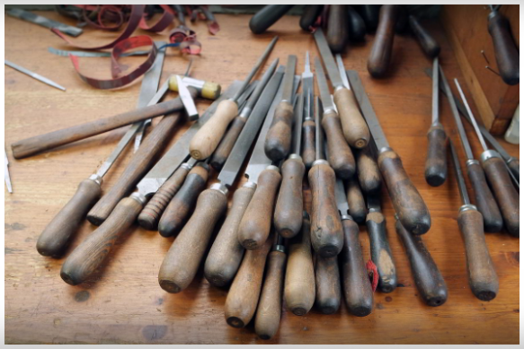 Gli attrezzi per fare il piattino non esistono in commercio quindi li costruiamo a mano usando lime ad ago e tanta pazienza.