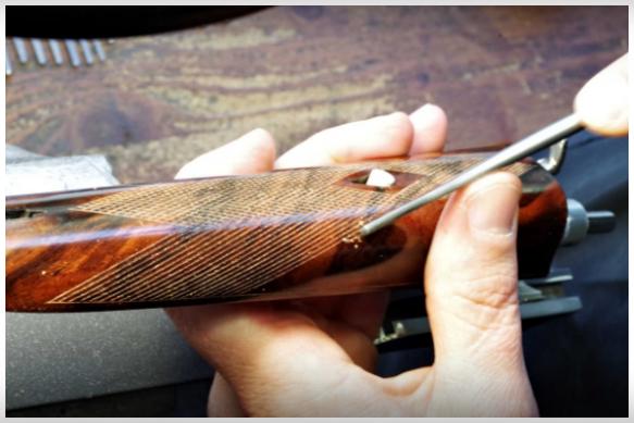 Dopo anni di stagionatura naturale un pezzo di legno può ancora essere soggetto a delle piccole deformazioni che non sono ammesse nell'ambito del suo utilizzo su un fucile di qualità. Tutti I nostri legni sono stagionati in modo naturale per un periodo minimo di sette anni seguendo un ciclo di lavorazione programmato in modo da permetterne l'assestamento ogni qual volta subiscano delle abbondanti diminuzioni di massa a seguito della sagomatura. Dopo l'incassatura tra bascula e legno, il fucile "riposa" per più di un mese cosicché il legno si assesti e possa infine essere pareggiato con le superfici in acciaio ottenendo un perfetto assemblaggio tra i due materiali. Ogni legno viene selezionato primariamente in base alle sue caratteristiche meccaniche e solo secondariamente in base all'estetica. Al momento dell'acquisto ovviamente scegliamo quelli che presentano il miglior compromesso tra entrambe queste caratteristiche. Oggi la cosa più difficile per un costruttore d'armi non è l'avere un bel legno, ma l'averlo bello e sufficientemente stagionato. Coloro che per accelerare i tempi ricorrono ad essiccature forzate tramite forni, distruggono la struttura interna del legno che perde consistenza e diventa fragile ed instabile. Guido Rizzini ha sempre avuto una grande passione per il legno di noce e per questo ne acquistò ogni volta che ritenne di trovare qualcosa di interessante. Oggi la tradizione continua e noi possiamo offrire ai nostri clienti una scelta tra oltre 600 legni stagionati che possono soddisfare tutti i palati. Volendo costruire fucili nel rispetto delle tradizioni non si deve "violentare" un legno di noce intagliandolo con le macchine. Il lavoro deve essere eseguito a mano, con scalpelli che lo taglino con dolcezza seguendone la fibbra ed adattandolo perfettamente all'acciaio. Solo così si ottengono le giuste tolleranze fino a trasformare i due materiali in un tutt'uno di armonia ed eleganza. Osservando la luce riflessa sulla superficie liscia di uno dei nostri legni si nota immediatamente l'assenza di ondulazioni, sinonimo sicuro di massima qualità nelle finiture. Le superfici opache, di solito, sono una scappatoia per nascondere piccoli difetti di lavori eseguiti da mani inesperte. Lucidature come le nostre non permettono di commettere alcun errore durante tutte le fasi precedenti la finitura ma, soprattutto, necessitano di molto tempo. Sono infatti necessari più di due mesi di lavoro giornaliero per completare la lucidatura ad olio di un singolo legno, ma i risultati sono sotto i vostri occhi ! Gli spigoli possono essere un altro metodo di riscontro per verificare la qualità di un lavoro : solo se sono perfetti e "taglienti" ci si trova di fronte ad esecuzioni di alto livello, sia che si tratti di parti in legno sia che si tratti di parti in acciaio. Spigoli arrotondati denotano imperizia nell'esecuzione e invecchiano precocemente quella che dovrebbe invece essere un'arma "giovane".