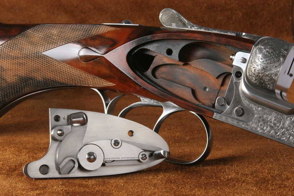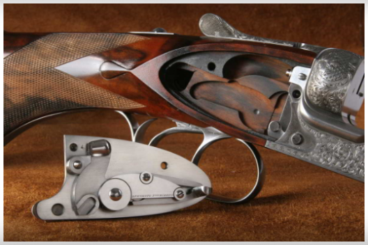 Possiamo solo anticiparvi che il suo alloggiamento ci permette di sagomare elegantemente il profilo esterno dell'acciarino al pari di quello di un normale cal. 12 e, allo stesso tempo, rende l'apertura dell'arma tanto dolce da poter essere paragonata a quella di un fucile con sistema self-opening !